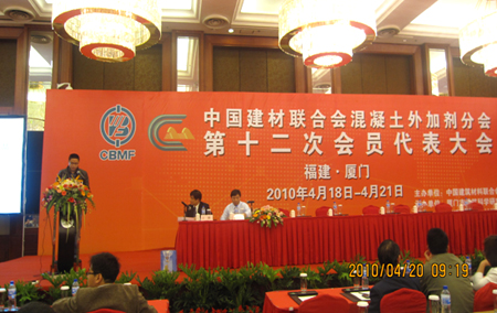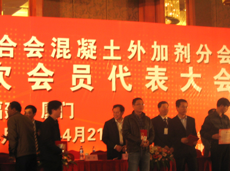 4月18日~20日,中国建材联合会混凝土外加剂分会第十二次会员代表大会暨第三届“中国混凝土外加剂产品及设备展示会”在福建厦门隆重召开,公司的陈国新高工、付丹华经理出席会议。