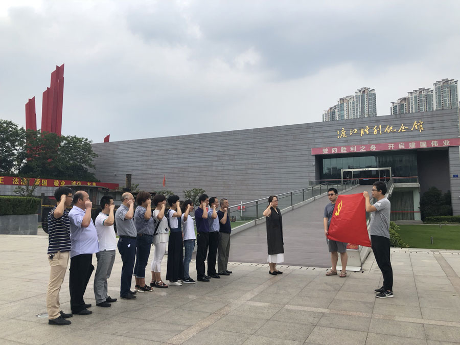 为深入学习贯彻习近平新时代中国特色社会主义思想和党的十九大精神,引导广大党员“不忘初心、牢记使命”。按照院党委要求,瑞迪高新党支部开展“不忘初心,重温入党誓词”主题党日活动。2018年7月24日下午,组织全体党员和入党积极分子参观南京渡江胜利纪念馆,追怀渡江战役历史,缅怀革命先烈的丰功伟绩,强化红色记忆;面对党旗,集体宣誓,重温入党时的誓言与决心。 南京渡江胜利纪念馆共分六大主题馆,以实物、图片、文字和声、光、电等现代化手段,将渡江勇士们的英勇事迹和大无畏的革命精神展现的淋漓尽致。全体党员和入党积极分子一边驻足凝神参观,聆听讲解,一边交流思想体会,深刻感受到我党领导中国人民浴血奋战,经过无数革命先烈前仆后继的流血和牺牲,最终取得革命胜利的不易,更加坚定了理想信念,增强了四个自信。 在支部书记祝烨然同志的带领下,全体党员来到纪念馆广场,面对党旗,庄严的举起右手向鲜红的党旗集体宣誓,重温入党誓词。 本次主题党日活动,全体党员进一步增强了党性观念,增强了“四个意识”。全体党员和入党积极分子纷纷表示,今后要将学习和贯彻习近平同志新时代中国特色社会主义和党的十九大精神同学习党的历史结合起来,积极工作,在公司发展关键期,充分发挥先锋模范作用和战斗堡垒作用。 |