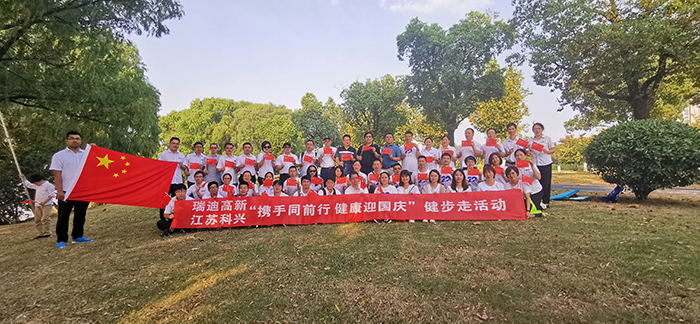 秋风和煦,暖意融融。为庆祝祖国70华诞,2019年9月30日,瑞迪高新、江苏科兴联合举办了“携手同前行,健康迎国庆”健步走活动。南科院戴济群副院长、总公司唐云清总经理、公司徐志峰董事长及两公司40多名职工参加此活动。 全体人员统一着装,从绿博园北门出发,踏着秋风,沿着绿色步道,开始了健步走活动。一路上,秋风送爽,丹桂飘香,大家欢声笑语,相互间尽情舒怀,释放工作的压力,尽情陶醉在这美景之中。 此次活动进一步激发了大家的爱国情怀,丰富了公司精神文化生活,促进了沟通,增进了友谊,增强了院科技产业部门的凝聚力和向心力。 |