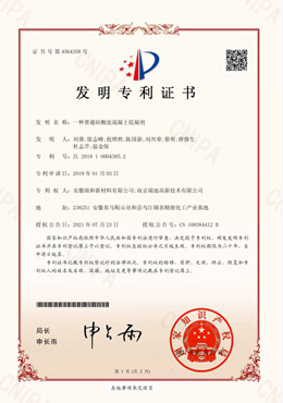 2021年7月23日,公司自主研发的《一种普通硅酸盐混凝土促凝剂》,成功获得国家发明专利授权(专利号:201910004305.2)。 该项发明公开了一种用于普通硅酸盐混凝土的促凝剂,各组分的质量百分比为:钙盐10%~25%,醇胺类物质0.4%~5%,阴离子聚合物1%~4%,余量为水,总量100%。按本发明制备的促凝剂与聚羧酸减水剂协同性好,可有效缩短混凝土凝结时间但不至于速凝,可广泛使用于具有促凝要求的各类普通硅酸盐混凝土,特别适用于预制构件厂构件的免蒸养工艺和低温环境下的混凝土施工。 |