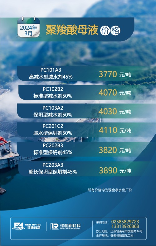 【聚羧酸系减水剂母液月度最新价格】丨2024年3月