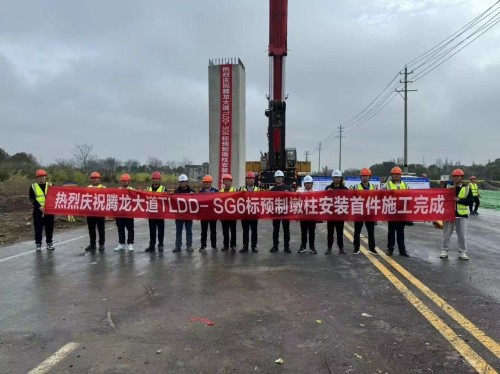 我司参建的预制墩柱于常州腾龙大道完成首件安装 | |